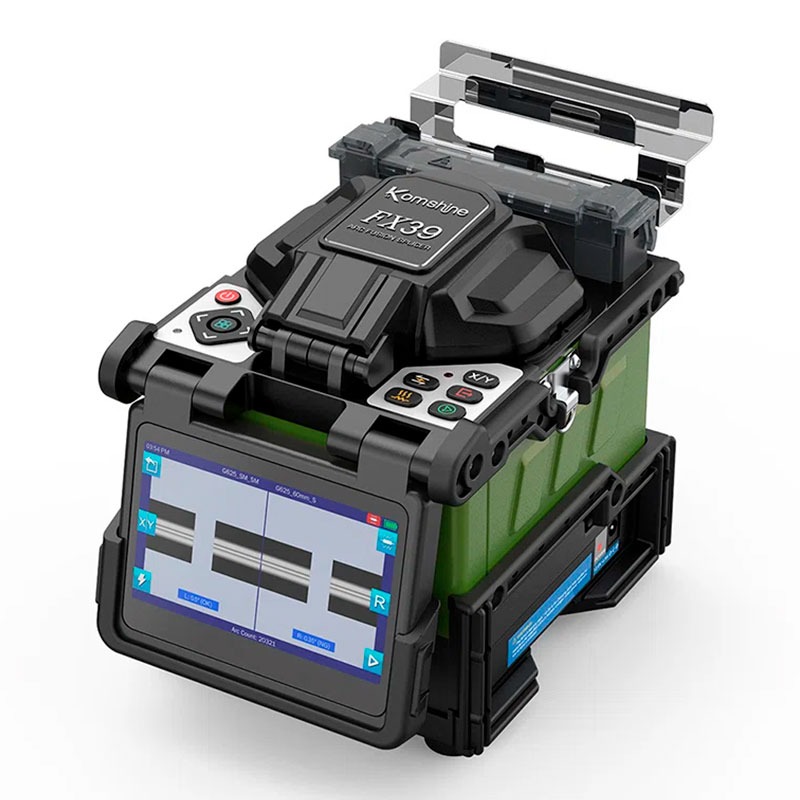 La Fusionadora FX-39 de Komshine es un equipo de fusión de fibra óptica de última generación diseñado para profesionales de telecomunicaciones y cableado estructurado. Cuenta con tecnología de alineación por núcleo mediante seis motores independientes que garantizan la máxima precisión en cada empalme, minimizando pérdidas ópticas y asegurando la integridad de las conexiones de fibra.