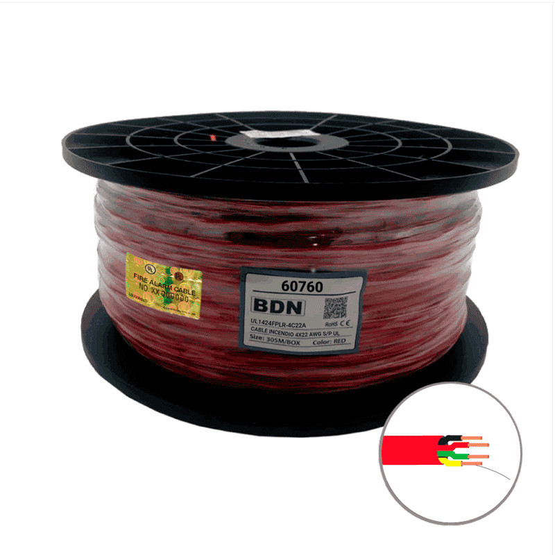 El Cable Incendio UL Rojo BDN 4x22 AWG S/P FPLR es perfecto para mantener la seguridad en tu proyecto. Fabricado con los más altos estándares de calidad, este cable cumple con las normas UL1424FPLR-4C22A. Es resistente al fuego y brinda una excelente conductividad eléctrica.